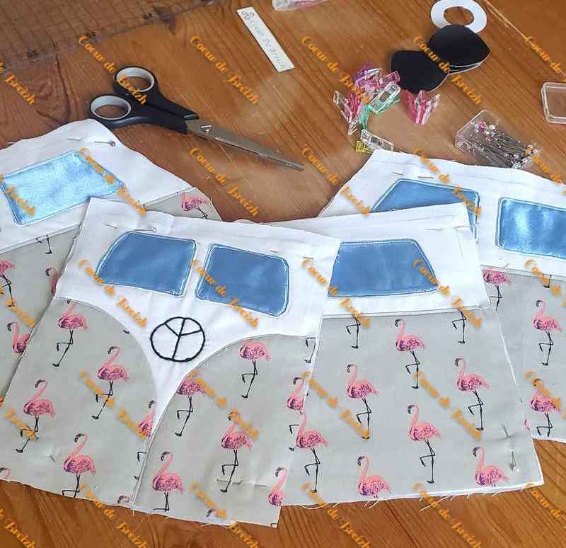 Mais j'ai de plus, une particularité, en dehors du fait que chaque modèle soit unique et déposé, je crée 90% de mes motifs ©, que je fais imprimer sur mes matières premières en UE, aux normes oeko-tex ou Gots (simili, velours d'ameublement, polyester imperméable, coton, etc...).
